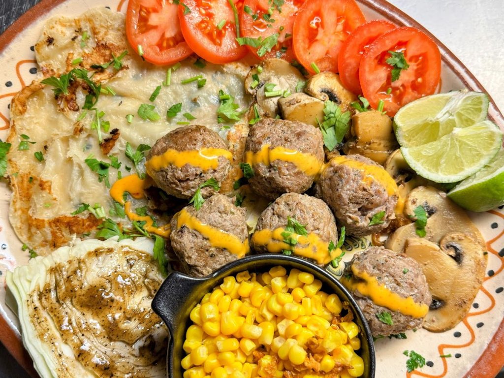 I made Turkey balls today with mushshrooms, spicy cabbage, lard filled corn, tomatoes and lots of limes. Super fucking tasty, again!!